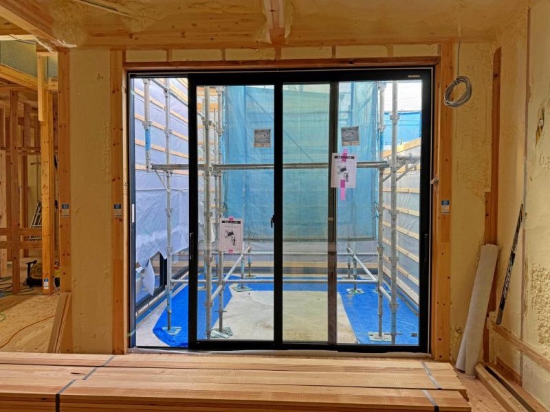 サッシ枠の取り付け時に