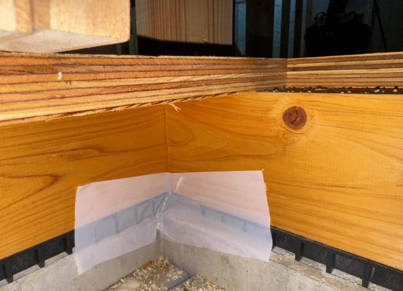 まずは 入隅に気密テープを塗布。