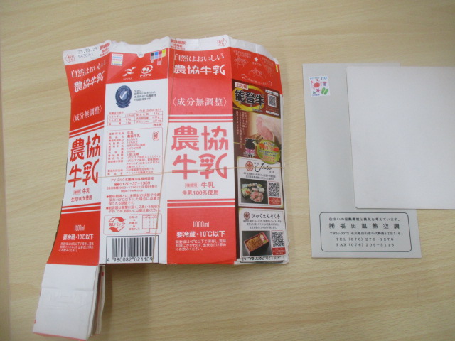 ポストに郵便物を入れたら、次は牛乳パックのリサイクルの場所まで歩きます。