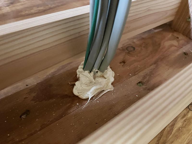 床の配線貫通部はコーキングで