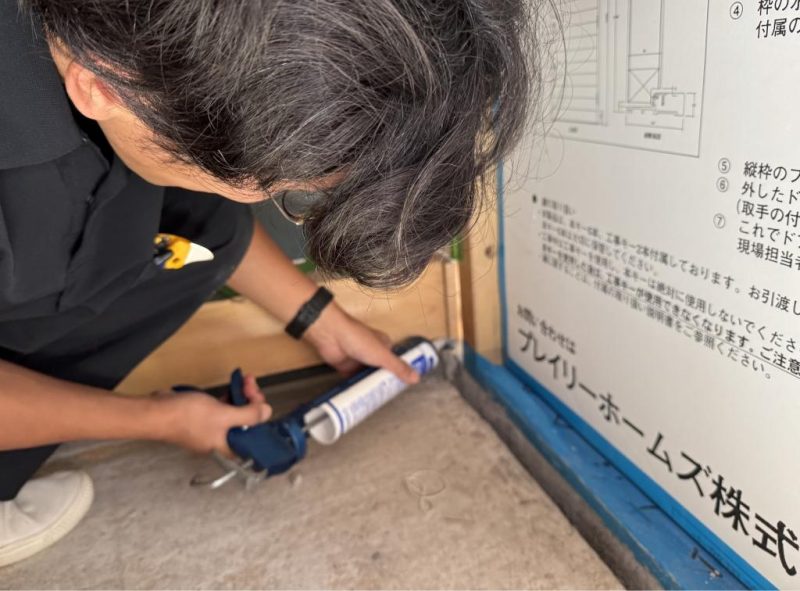 では C値改善(隙間埋め作業)を