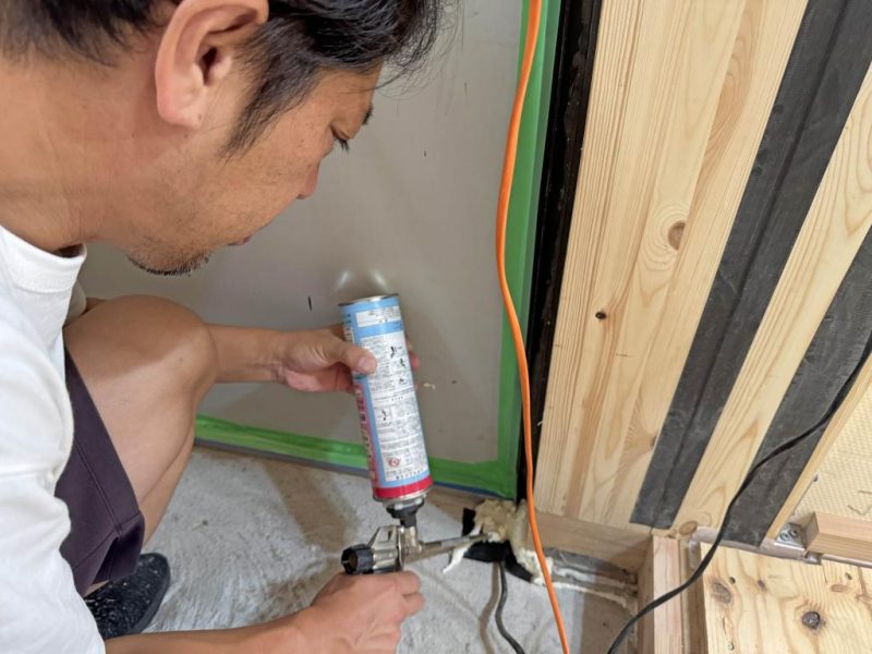 では C値改善(隙間埋め作業)を