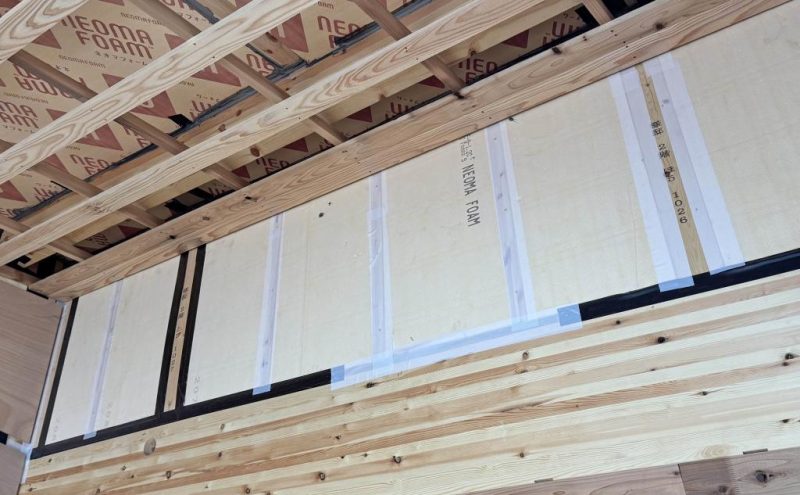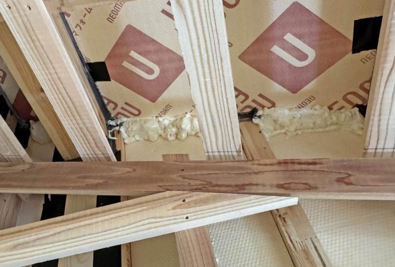 屋根側は 気密テープで気密施工。