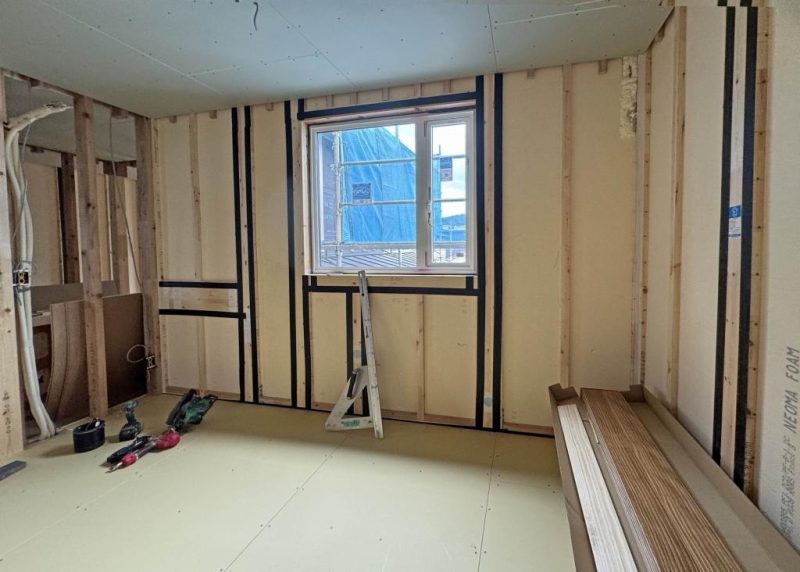 気密テープによる気密施工。