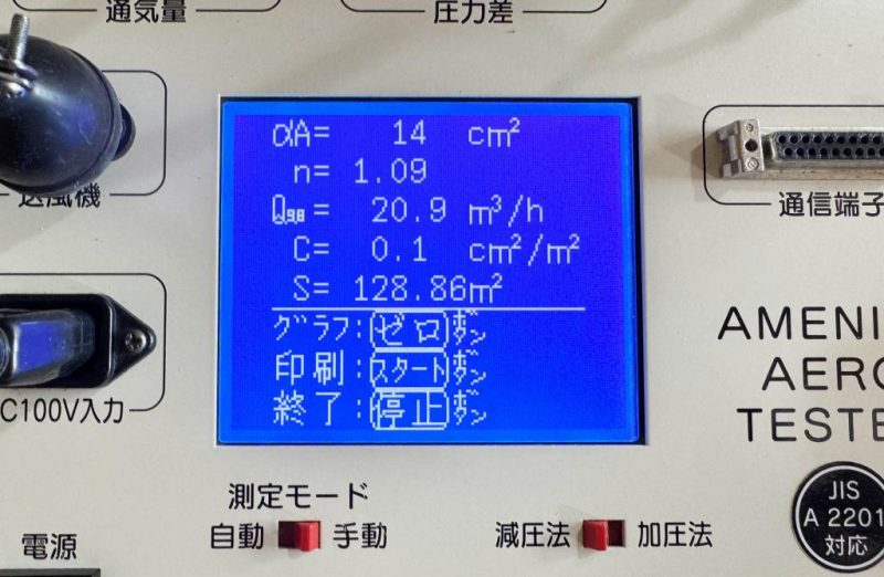 気になる気密測定の結果は …。