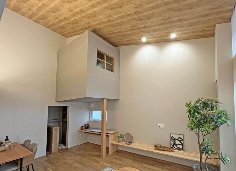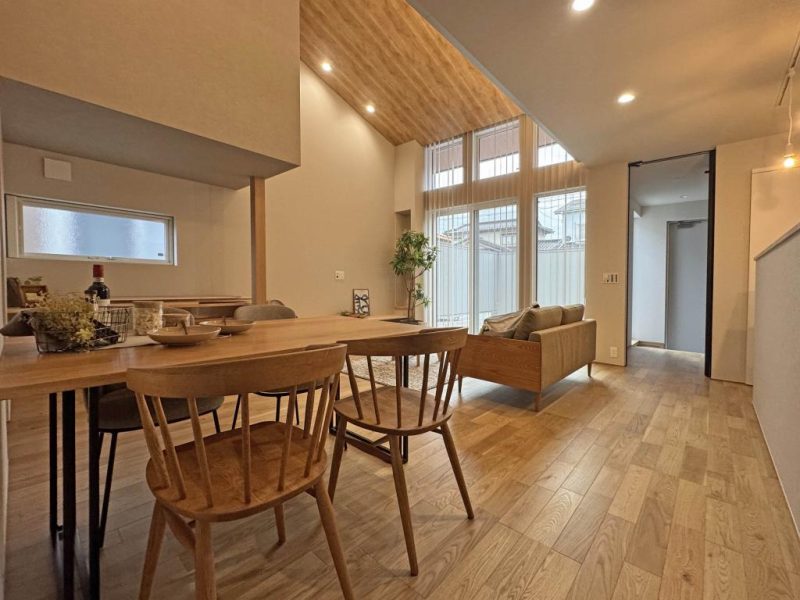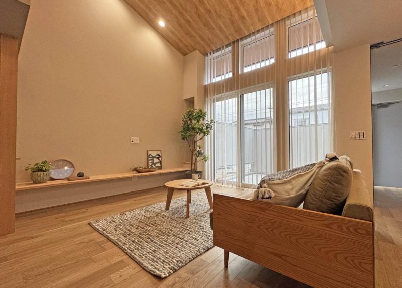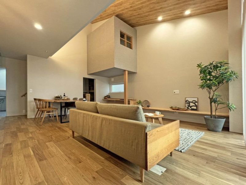 リビングは勾配天井に