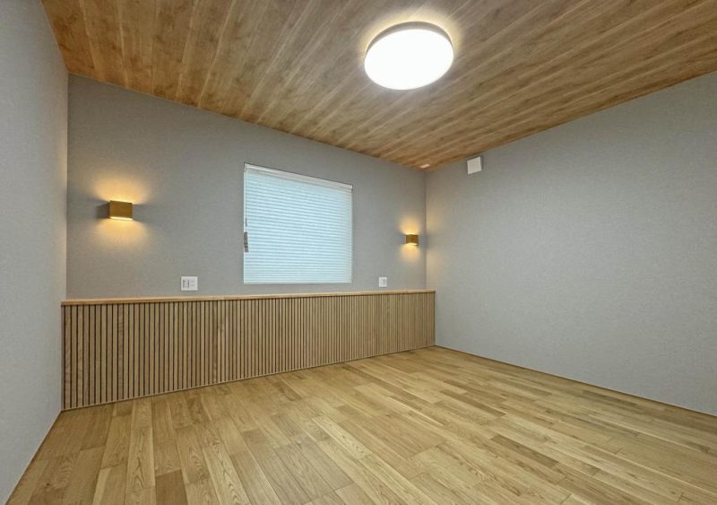 寝室の天井は板張り。