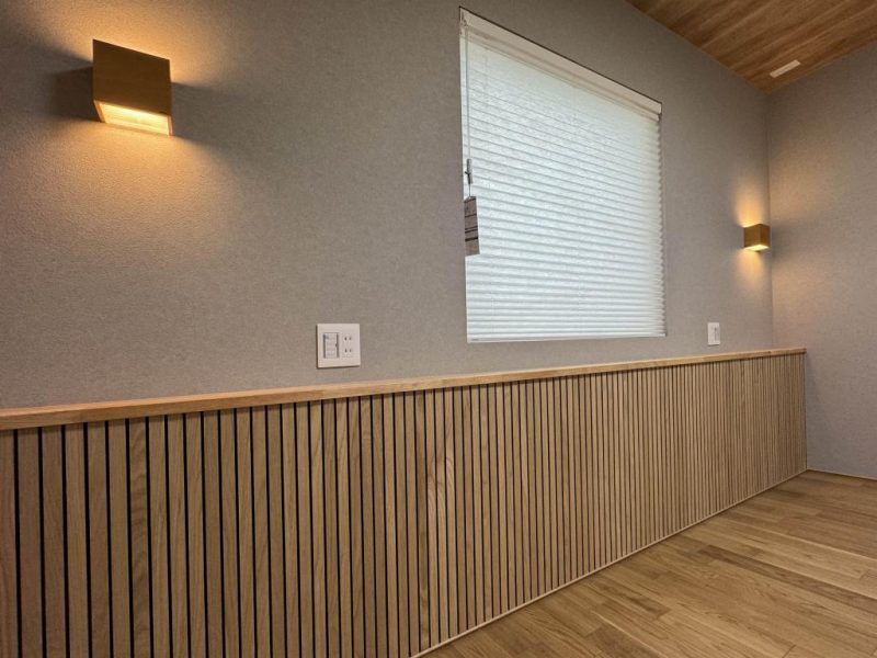 ヘッドボード側の腰壁が