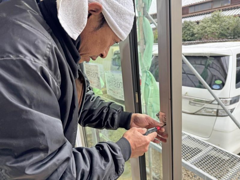 大工さんにサッシ調整を
