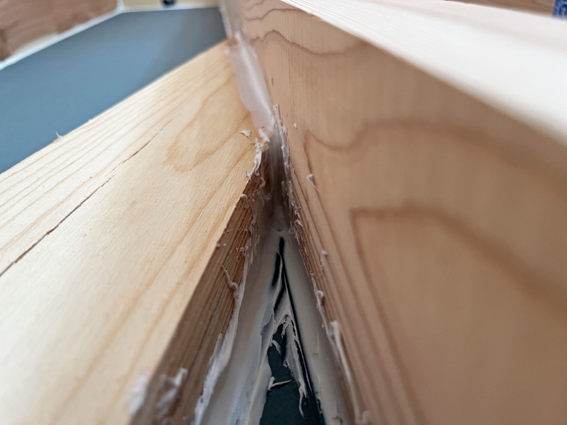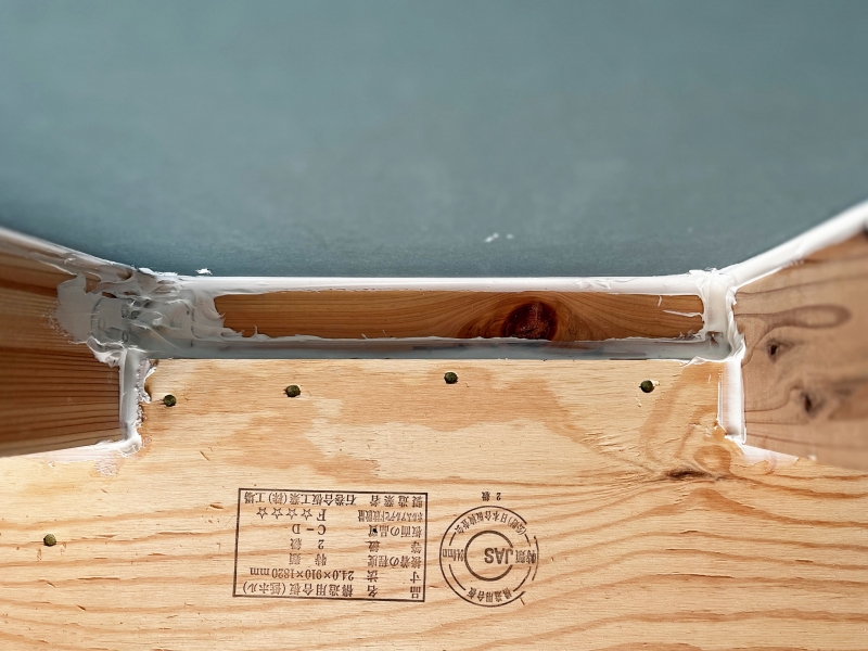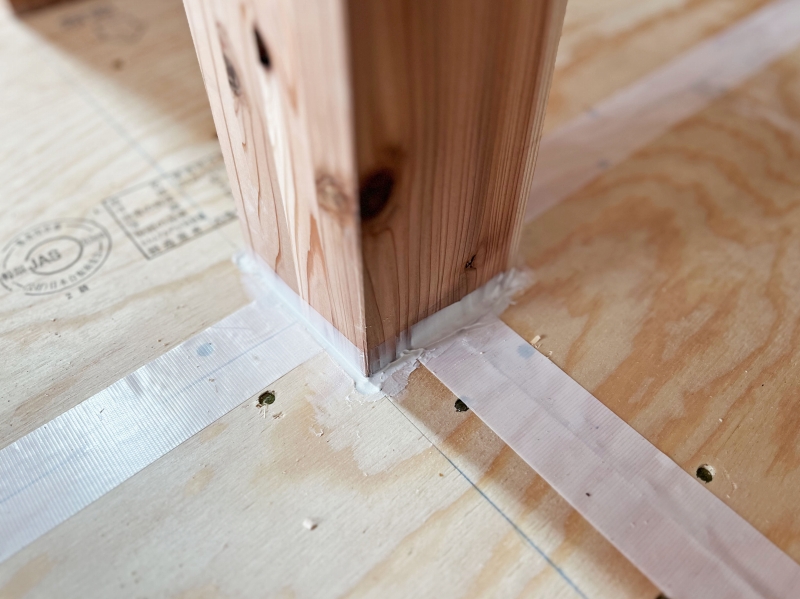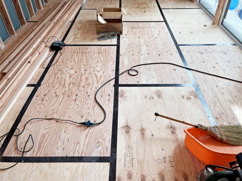 床の合板の取り合いにテープを