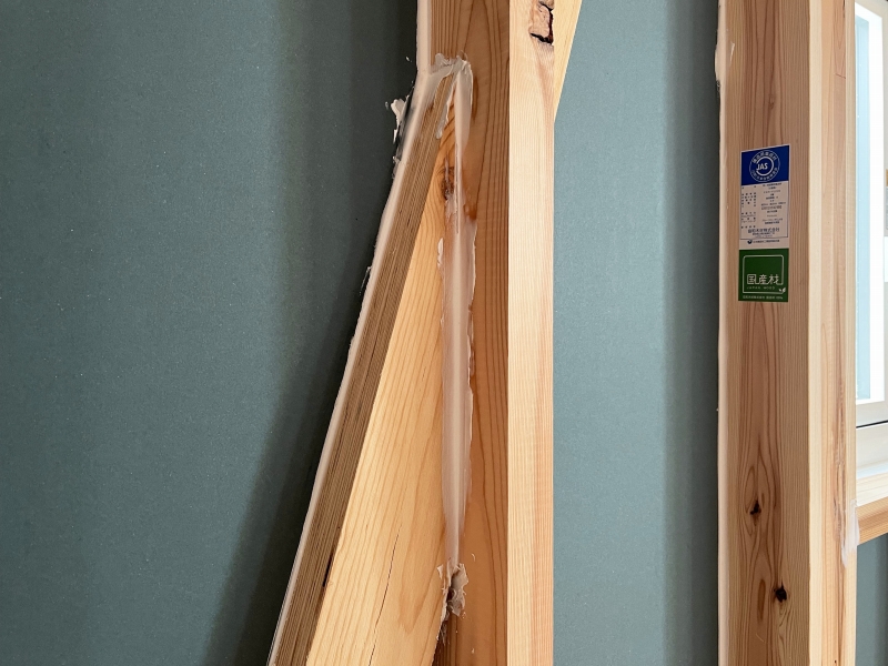 筋交いの鋭角な部分は隙間が