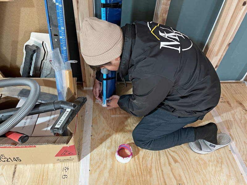お風呂周りの気密処理です。