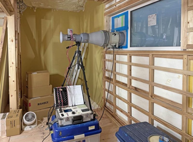 現場の気密測定を行いました。