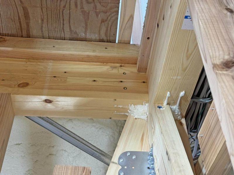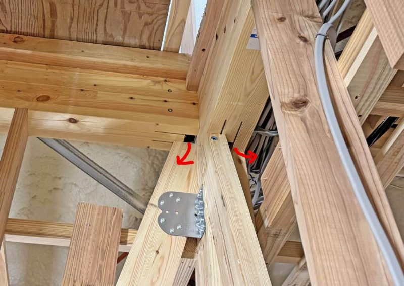 間柱と梁の取り合いにも