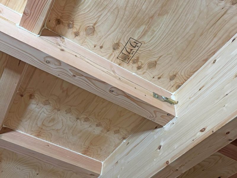 屋根側の合板のジョイント部分に