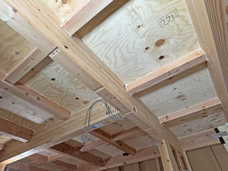 室内側は 梁と合板の