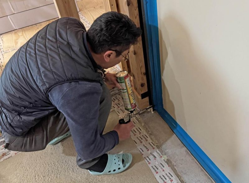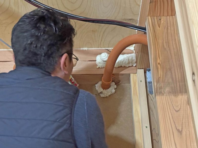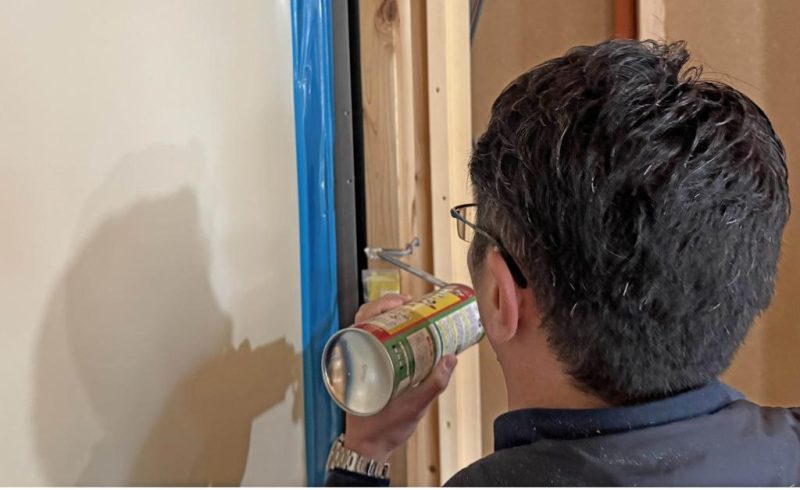 では C値改善(隙間埋め作業)を