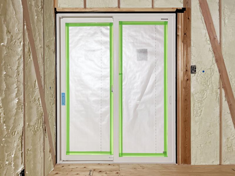 サッシ周りはテープを貼って
