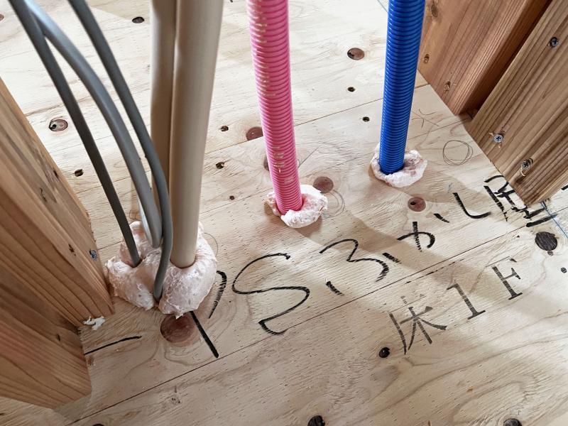 床を貫通している配線配管は