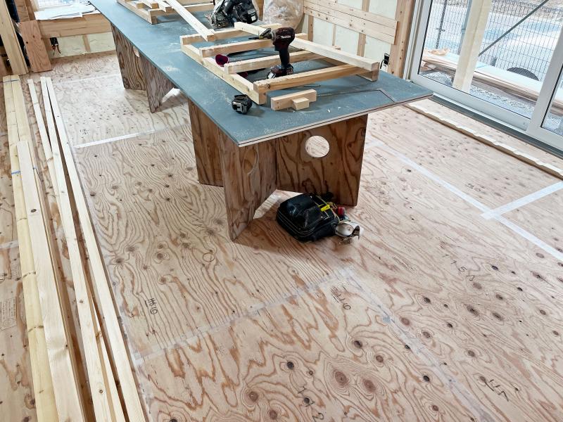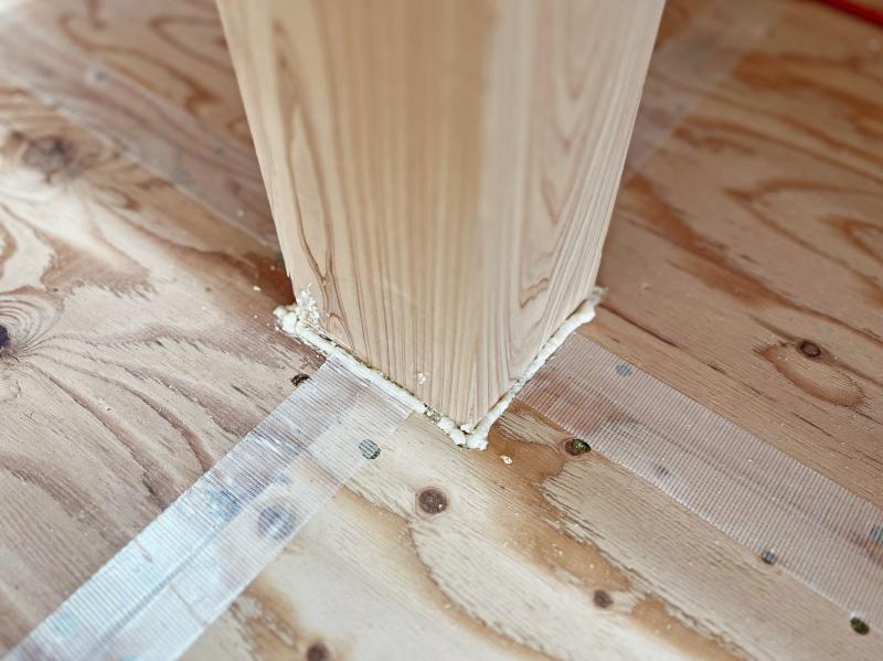 床の合板の取り合いにテープを