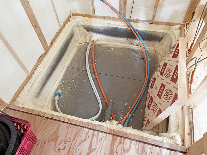 お風呂まわりの気密処理。