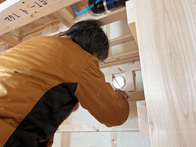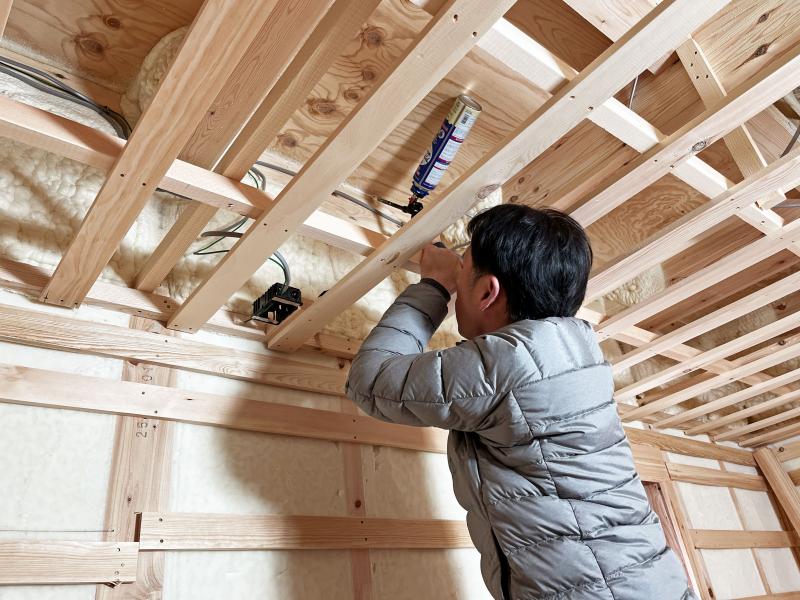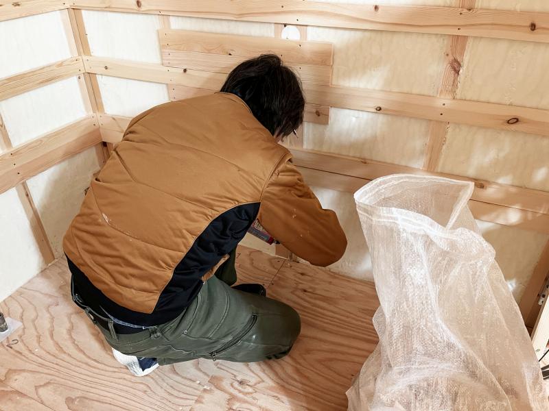 大工さんがウレタンを使って