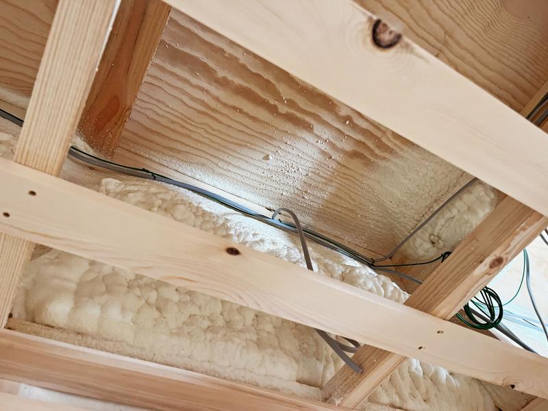 ウレタンを吹き付けて気密処理を施しました。