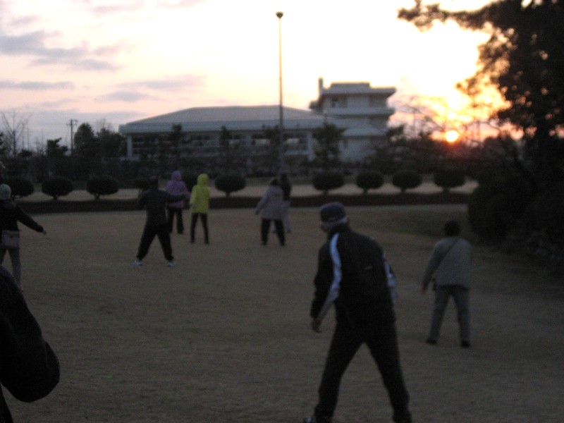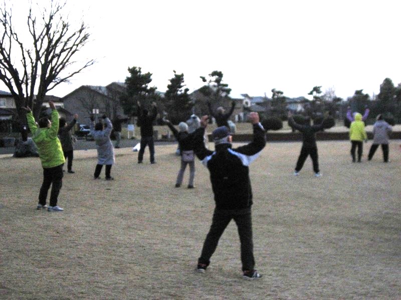 暗い中でラジオ体操を
