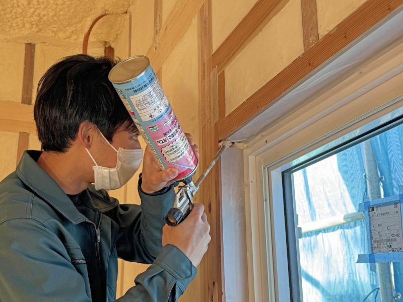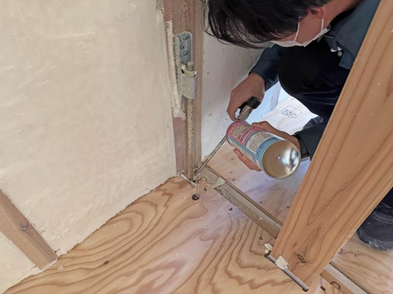 では C値改善(隙間埋め作業)を