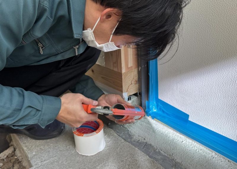 サッシ周りは 気密テープと