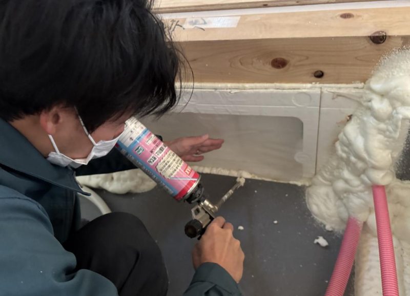 ウレタンによる気密施工。
