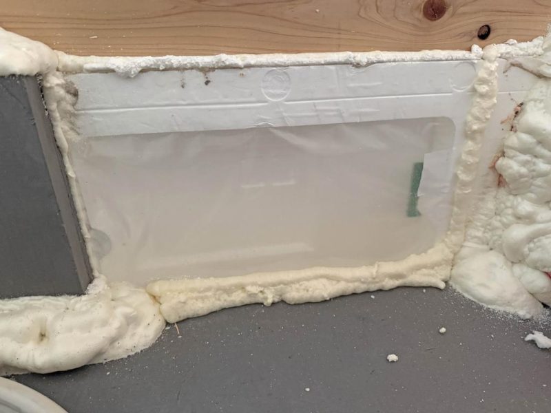 大きな穴にはウレタンを充填。