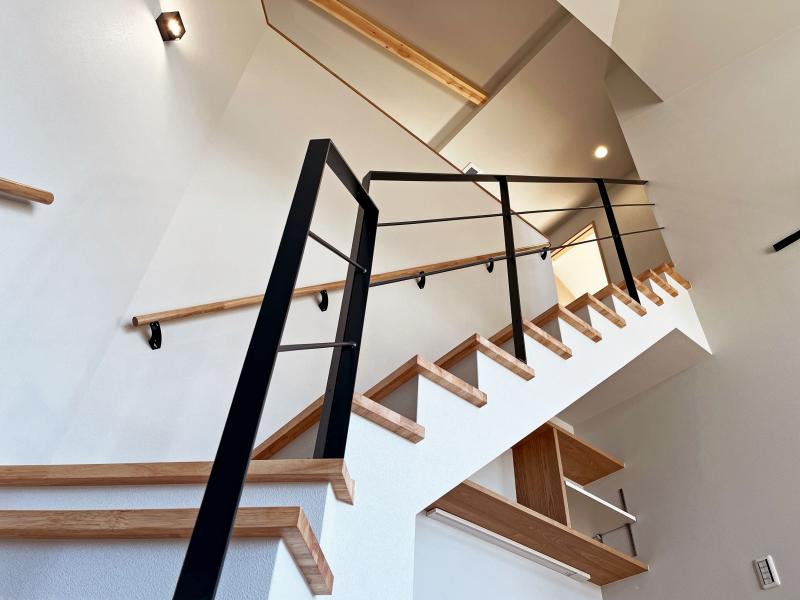 階段の手すりが黒のアイアンで