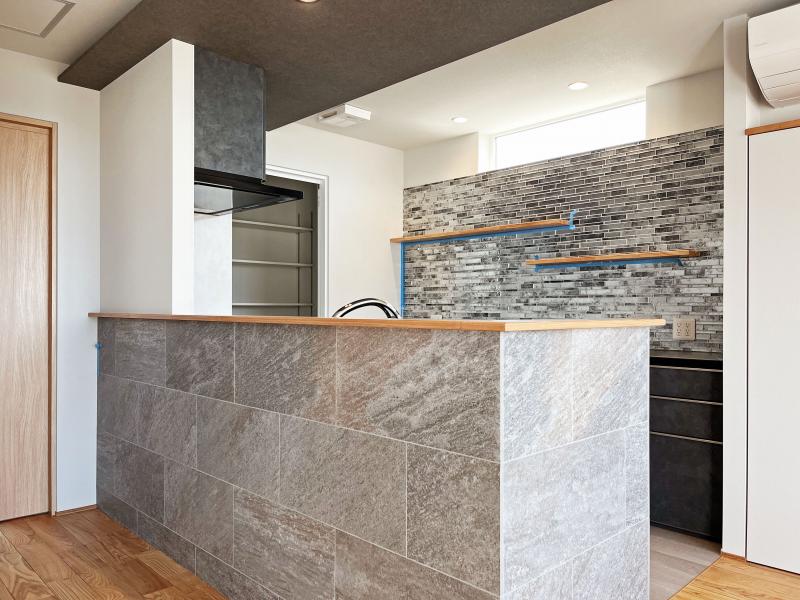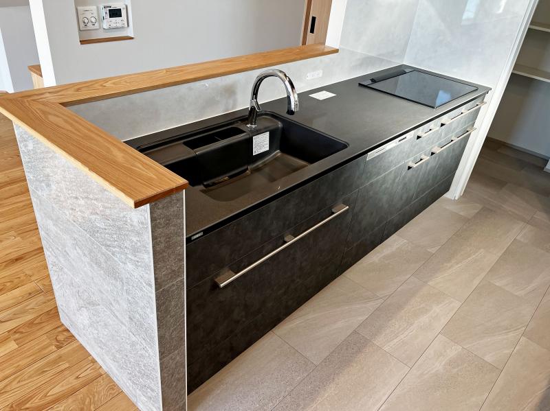 キッチンはグレーとブラックが